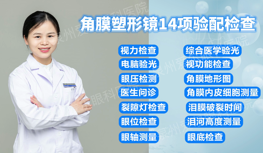 角膜塑形镜是目前证实有效的近视防控手段,但它是属于第三类医疗器械,验配过程必须严格且谨慎。泉州爱尔眼科医院是是全国角膜塑形安全监控哨点单位,验配单位设施、设备及验配人员资质等都有相应的严格要求。验配一副角膜塑形镜是由5人组成的专业验配团队来完成的,包括专科医师、专业验配师、视光师、护士、专属客服助理,全流程把控验配质量的安全,在验配前要经过14项眼部检查,如裂隙灯、医学验光、双眼视功能检查、角膜内皮细胞计数、角膜地形图、泪液及泪膜检查、眼轴检查等,然后根据检查结果判断是否有禁忌症,符合标准后再根据检查数据选择合适参数的角膜塑形镜,并且进行规范试戴评估。